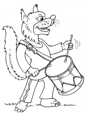 Opis kolorowanki: Wilk grający na bębnie Przedstawiamy kolorowankę do druku