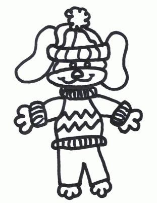 Opis kolorowanki - Uroczy piesek w zimowym przebraniu Przedstawiona kolorowanka...