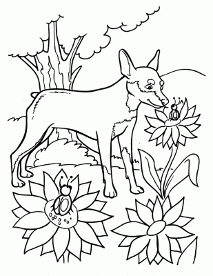 Opis Kolorowanki: Pies i Kwiaty Przedstawiona kolorowanka do druku zach...