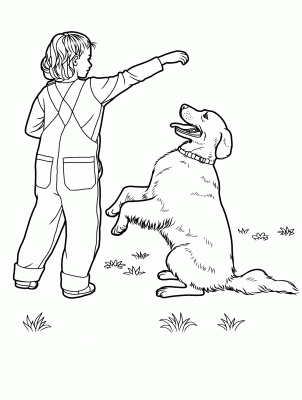 Kolorowanka: Dziecko i Pies Przedstawiona kolorowanka do druku ukazuje...