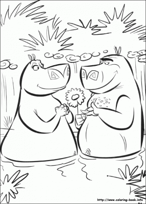 Opis kolorowanki - Hipopotamy w wodzie Przedstawiona kolorowanka do druku