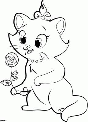 Opis kolorowanki z kotkiem Przedstawiona kolorowanka do druku przedstawia urocze