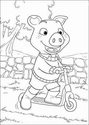 Kolorowanka do druku - Świnka na hulajnodze dla dzieci