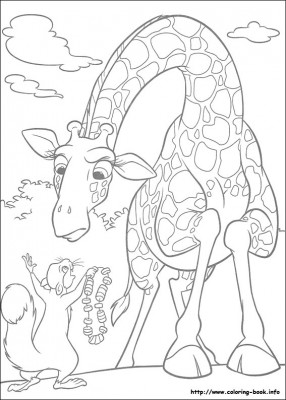 Opis kolorowanki z żyrafą i wiewiórką Przedstawiona kolorowanka do druku