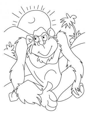 Opis kolorowanki z gorylem Przedstawiona kolorowanka do druku ukazuje d...