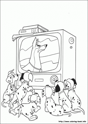 Kolorowanka Dalmatyńczyki i Telewizor - Kreatywna Zabawa dla Dzieci