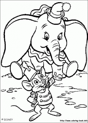 Opis kolorowanki z Dumbo i przyjacielem Przedstawiona kolorowanka do druku